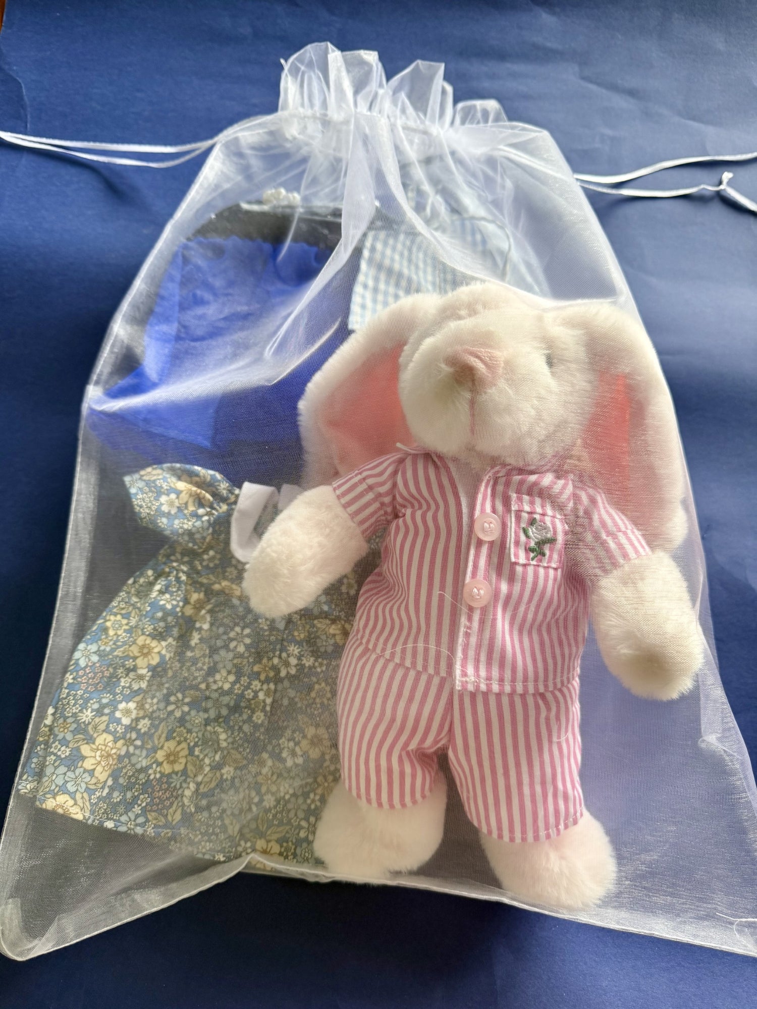 Marmalade Rabbit, soft toy, with her own clothing, comes in a bag. Character from the Tails of Tangleby Gardens series. Marmalade and Montgomery are sold separately.